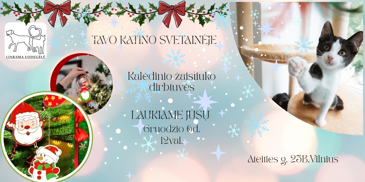 "Tavo katino svetainės" pūkuotieji gyventojai kviečia vaikus, jų tėvelius ir visus kūrybiškai nusiteikusius žmones į jaukias Kalėdų žaisliuko dirbtuves. Čia kiekvienas dalyvis kurs savo unikalų medinį kalėdinį žaisliuką – spalvins, dekoruos įvairiomis priemonėmis ir pridės šventinio žavesio savo eglutei. Dirbtuvės vyks šiltoje ir žaismingoje "Tavo katino svetainėje", kur aplink zuja draugiški katinukai. Jie suteiks jaukią […]